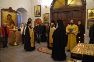 12 февраля 2017 года, в неделю о блудном сыне и память собора святых великих учителей и святителей Василия Великого, Григория Богослова и Иоанна Златоустого и.о. игумена Свято-Донского Старочеркасского мужского монастыря иеромонах Сергий (Коломиц) совместно с братией обители в священном сане в монастырском храме Донской иконы Божией Матери совершил Божественную литургию. Накануне, 11 февраля, было совершено всенощное бдение.