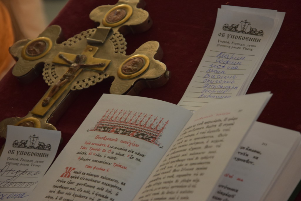 По окончании богослужения была совершена панихида, после которой ко всем молящимся с пастырским словом о церковном поминовении усопших обратился и.о. игумена иеромонах Сергий.