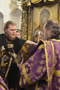 26 марта 2017 года, в неделю 4-ю Великого поста, Преподобного Иоанна Лествичника и.о. наместника Свято-Донского Старочеркасского мужского монастыря иеромонах Сергий (Коломиц) совместно с братией обители в священном сане в монастырском храме Донской иконы Божией Матери совершил Божественную литургию Святителя Василия Великого. Накануне, 25 марта, было совершено всенощное бдение.За богослужением были вознесены молитвы о мире на Украине и Сирийской земле.Песнопения богослужений исполнил мужской хор обители под управлением регента Владимира Лисаченко.Проповедь по запричастном стихе произнес насельник монастыря иеромонах Пимен (Новодранов).По окончании богослужения иеромонах Сергий вручил благодарственные письма и памятные подарки воспитанникам воскресной школы монастыря за занятые призовые места во втором туре Кирилло-Мефодиеской олимпиады.