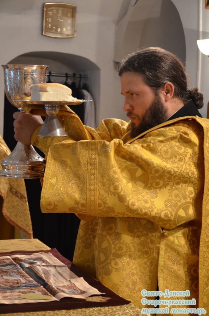 Проповедь перед Причастием на тему апостольского чтения произнес благочинный монастыря иеромонах Таврион (Балабанов).