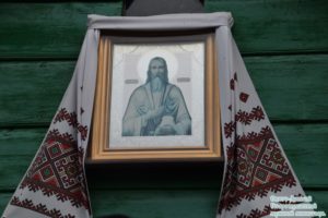 В келье святого праведного Павла экскурсию для паломников провел смотритель иеродиакон Ефрем(Устименко).