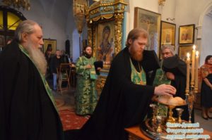 По окончании богослужения и.о. наместника монастыря принял поздравления от братии и паломников обители с днем тезоименитства и годовщиной монашеского пострига, после чего иеромонах Сергий обратился ко всем молящимся со словом проповеди, а также поблагодарил всех за теплые слова и поздравление.