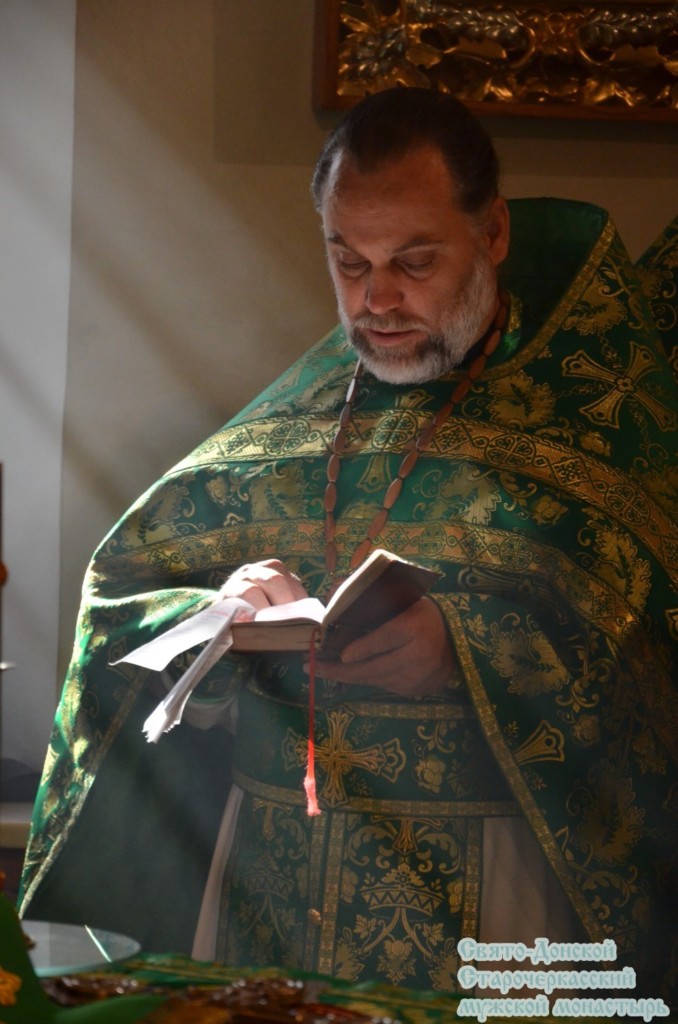 9 октября 2017 года, в день памяти святого славного и всехвального апостола и евангелиста Иоанна Богослова и святителя Тихона, патриарха Всероссийского и.о. наместника Свято-Донского Старочеркасского мужского монастыря иеромонах Сергий (Коломиц) совместно с братией обители в священном сане в монастырском храме Донской иконы Божией Матери совершил Божественную литургию, которую предварил братский молебен с