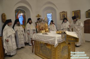 За богослужением были вознесены молитвы о мире на Украине и Сирийской земле.Песнопения богослужений исполнил мужской хор обители под управлением регента Владимира Лисаченко.