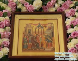 По окончании богослужении иеромонах Сергий обратился ко всем молящимся со словом проповеди: «Во имя Отца и Сына и Святаго Духа! Возлюбленные о Господе отцы, братья и сестры! Сегодня мы с Вами вспоминаем величайшее событие священной истории, которое весьма велико и значительно для нашего спасения. Ибо святость храма, в который вошла Пречистая, и её личная святость соединились, в результате чего пришёл Спаситель мира-Христос, для того чтобы исполнить предначертанное – спасти род человеческий.