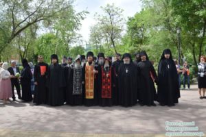 В ходе мероприятия иеромонах Сергий обратился к собравшимся со словом поздравления и духовного назидания, в котором поздравил всех с праздников Великой Победы и пожелал мирного неба над головой, а затем совершил благодарственный молебен Господу за дарование Победы и заупокойную литию по усопшим вождям, войнам и всем ради победы потрудившимся.