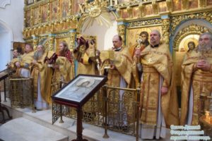 5 августа 2018 года, в неделю 10-ю по Пятидесятнице, в день празднования икон Божией Матери «Почаевской» и «Всех скорбящих радость», исполняющий обязанности наместника Свято-Донского Старочеркасского мужского монастыря иеромонах Сергий (Коломиц) совместно с братией обители в священном сане в монастырском храме Донской иконы Божией Матери совершил Божественную литургию, которую предварил братский молебен с акафистом Пресвятой Богородице «Радуйся, Невесто Неневестная!».