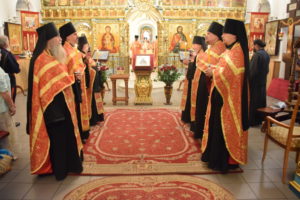 Накануне, 10 сентября, было совершено всенощное бдение, за которым был вынесен из алтаря ковчег с частицей честных мощей Предтечи и Крестителя Господня Иоанна Крестителя.