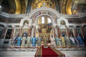 Божественную литургию в Патриаршем войсковом всеказачьем соборе Вознесения Господня совершили Глава Донской митрополии митрополит Ростовский и Новочеркасский Меркурий, митрополит Нижегородский и Арзамасский Георгий, Глава Нижегородской митрополии, митрополит Рязанский и Михайловский Марк, Глава Рязанской митрополии, митрополит Саранский и Мордовский Зиновий, Глава Мордовской митрополии, митрополит Астраханский и Камызякский Никон, Глава Астраханской митрополии, архиепископ Элистинский и Калмыцкий Юстиниан, архиепископ Ровеньковский и Свердловский Пантелеимон, епископ Волгодонский и Сальский Корнилий, епископ Россошанский и Острогожский Андрей, епископ Великолукский и Невельский Сергий, епископ Шахтинский и Миллеровский Симон, епископ Чистопольский и Нижнекамский Пармен, епископ Славгородский и Каменский Всеволод, епископ Шадринский и Далматовский Владимир.