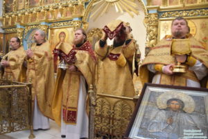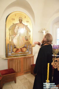 Накануне, 27 октября, было совершено всенощное бдение. Перед началом всенощного бдения и.о. наместника совершил благодарственный молебен ко Господу и освятил икону Спасителя, написанную для горнего места алтаря Донского храма обители в Ярославской иконописной мастерской «Ставрос».