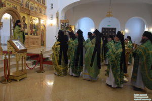 За богослужением молились настоятельница Свято-Иверского женского монастыря игумения Рахиль (Ковалева) с сестрами, исполняющий обязанности наместника Свято-Донского Старочеркасского мужского монастыря иеромонах Сергий (Коломиц) с братией, монашествующие в священном сане Ростовской-на-Дону епархии и студенты Донской духовной семинарии.