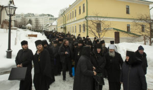 В эти дни, монашествующие предваряли свою работу с молитвы за Божественной литургией в соборе Рождества Пресвятой Богородицы Зачатьевского ставропигиального женского монастыря Москвы