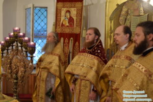 По окончании Божественной литургии иеромонах Сергий обратился ко всем молящимся со словом проповеди, после чего от лица братии поздравил насельников обители — казначея монастыря иеромонаха Германа (Колесникова) с днем рождения, эконома монастыря — иеромонаха Никона (Сандульского) с годовщиной диаконской хиротонии, насельника обители священника Павла Артамонова с днем тезоименитства, вручив им праздничные просфоры и пожелав крепкого здравия, непрестанной радости о Духе Святом и многая и благая лета.