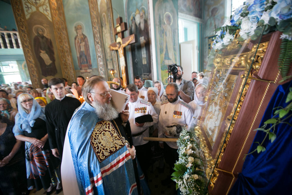 Его Высокопреосвященство приветствовал молящихся с престольным праздником храма в честь Смоленской иконы Божией Матери, именуемой «Одигитрия», и в архипастырском слове, в частности, сказал: