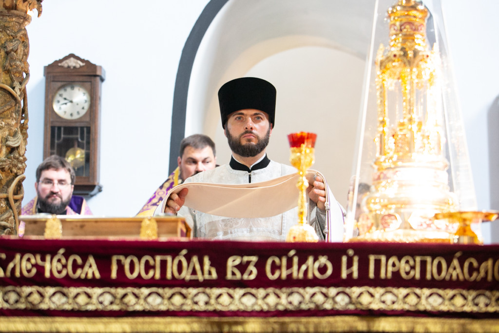 «Сегодня мы слышали удивительные слова святого апостола: для погибающих крест – это юродство, а для нас, спасаемых, это сила Божия, Его премудрость. Сила Животворящего Креста Господня, которую Бог оставил Своей Церкви после крестных страданий, спасает, ограждает, сохраняет, вразумляет и наставляет нас. А самое главное, укрепляет нас на том пути, по которому мы идем. А какой путь у христианина? Путь Христов. Дорога не прямая, полная ухабов, скорбей и превратностей, и ведет она к Голгофе. У каждого человека в жизни свой крест, своя Голгофа, то, что он должен пережить как сораспятие себя Господу Иисусу Христу».