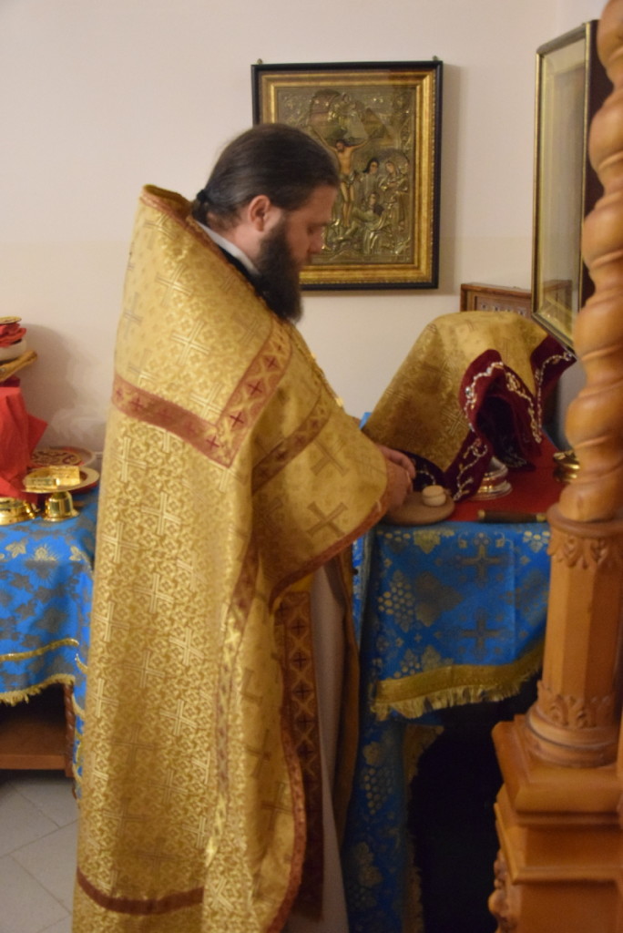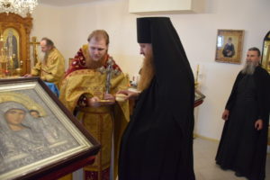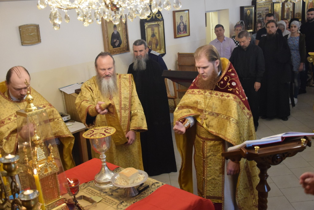 15 сентября 2019 года, в неделю 13-ю по Пятидесятнице, в день памяти преподобных Антония и Феодосия Киево-Печерских, исполняющий обязанности наместника Донского Старочеркасского Ефремовского мужского монастыря иеромонах Сергий (Коломиц) совместно с братией обители в священном сане, во временном монастырском храме совершил Божественную литургию, которую предварил братский молебен с акафистом всем преподобным отцам Киево-Печерским.