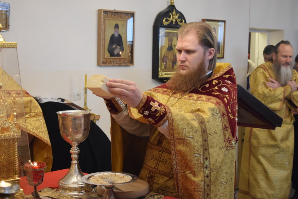 По окончании Литургии иеромонах Сергий приветствовал всех молящихся с праздником преподобных Антония и Феодосия Киево-Печерских, после чего от лица священноархимандрита и братии обители поздравил насельника монастыря монаха Феодосия (Жванова) с днем тезоименитства, вручив ему просфору и пожелав крепкого здравия, непрестанной радости о Духе Святом, и многая и благая лета.