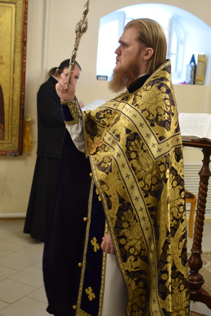 По заамвоной молитве было совершено поклонение Кресту Господню.