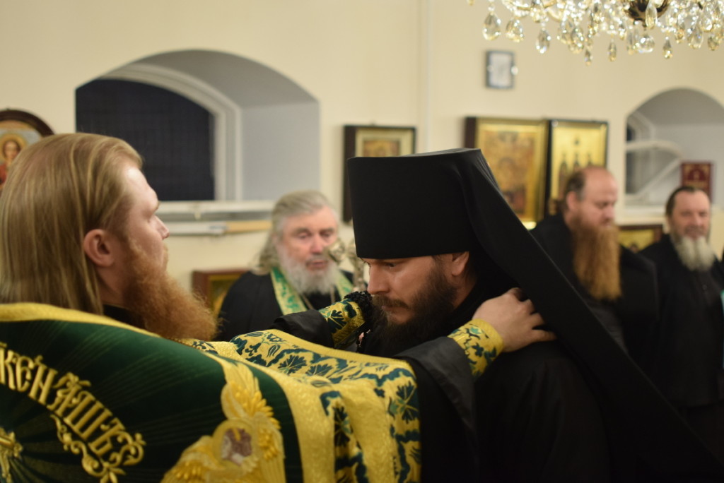 Накануне, 7 октября, было совершено всенощное бдение с пением акафиста преподобному Сергию, игумену Радонежскому, по окончании которого, иеромонах Сергий преподал благословение на ношение рясы и клобука насельнику монастыря послушнику Александру (Лобко).