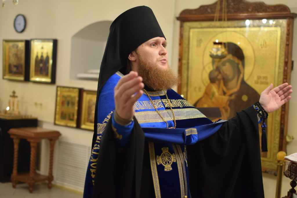 По прочтении Евангелия иеромонах Сергий обратился ко всем молящимся с пастырским словом, посвященным празднику Введения во Храм Пресвятой Богородицы.