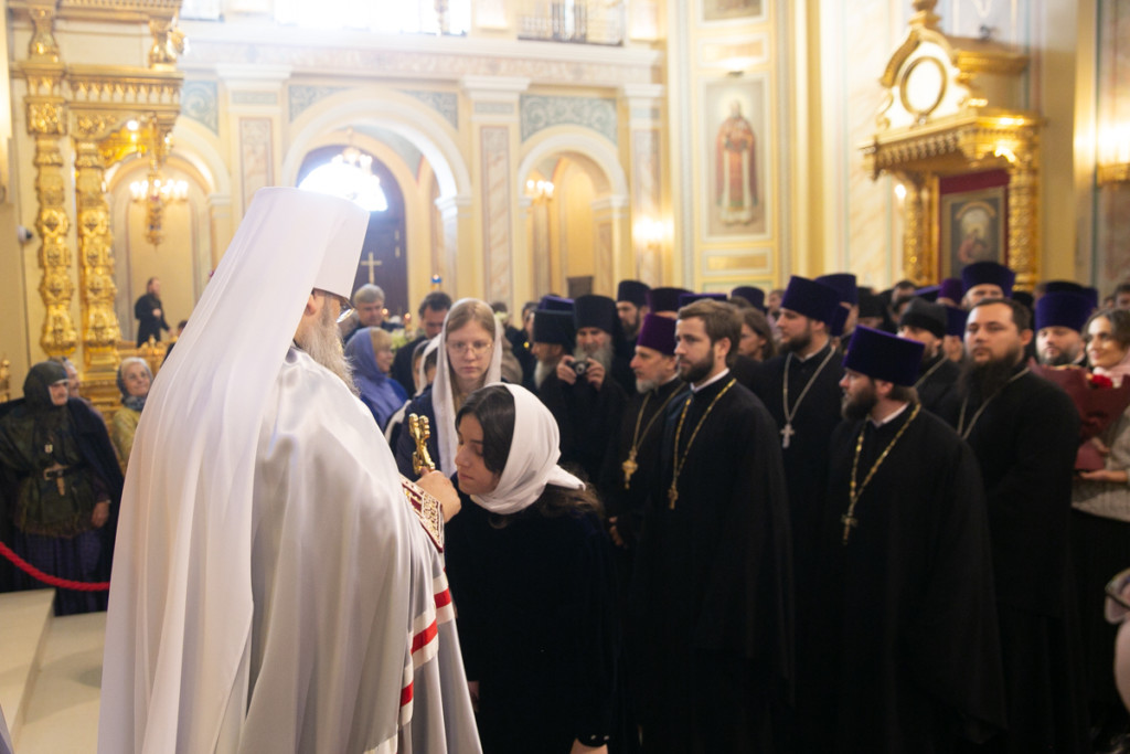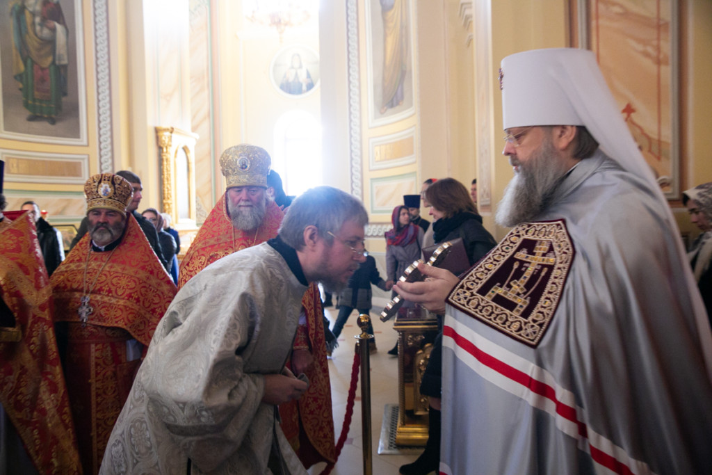 В завершении богослужения было возглашено многолетие Святейшему Патриарху Московскому и всея Руси Кириллу и Высокопреосвященнейшему митрополиту Меркурию с богоспасаемой паствой.