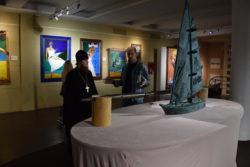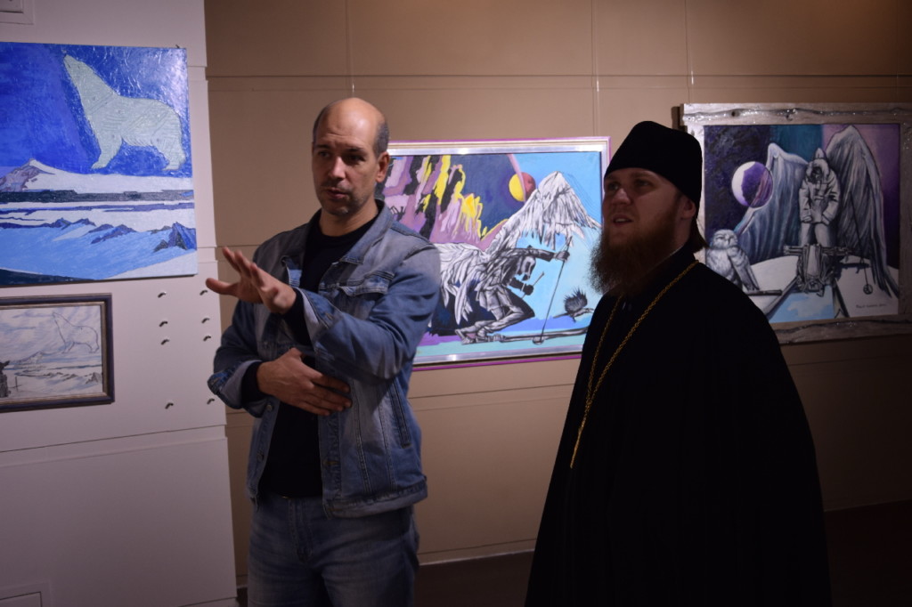 Затем для священника была проведена экскурсия по выставке картин путешественника протоиерея Федора Конюхова.