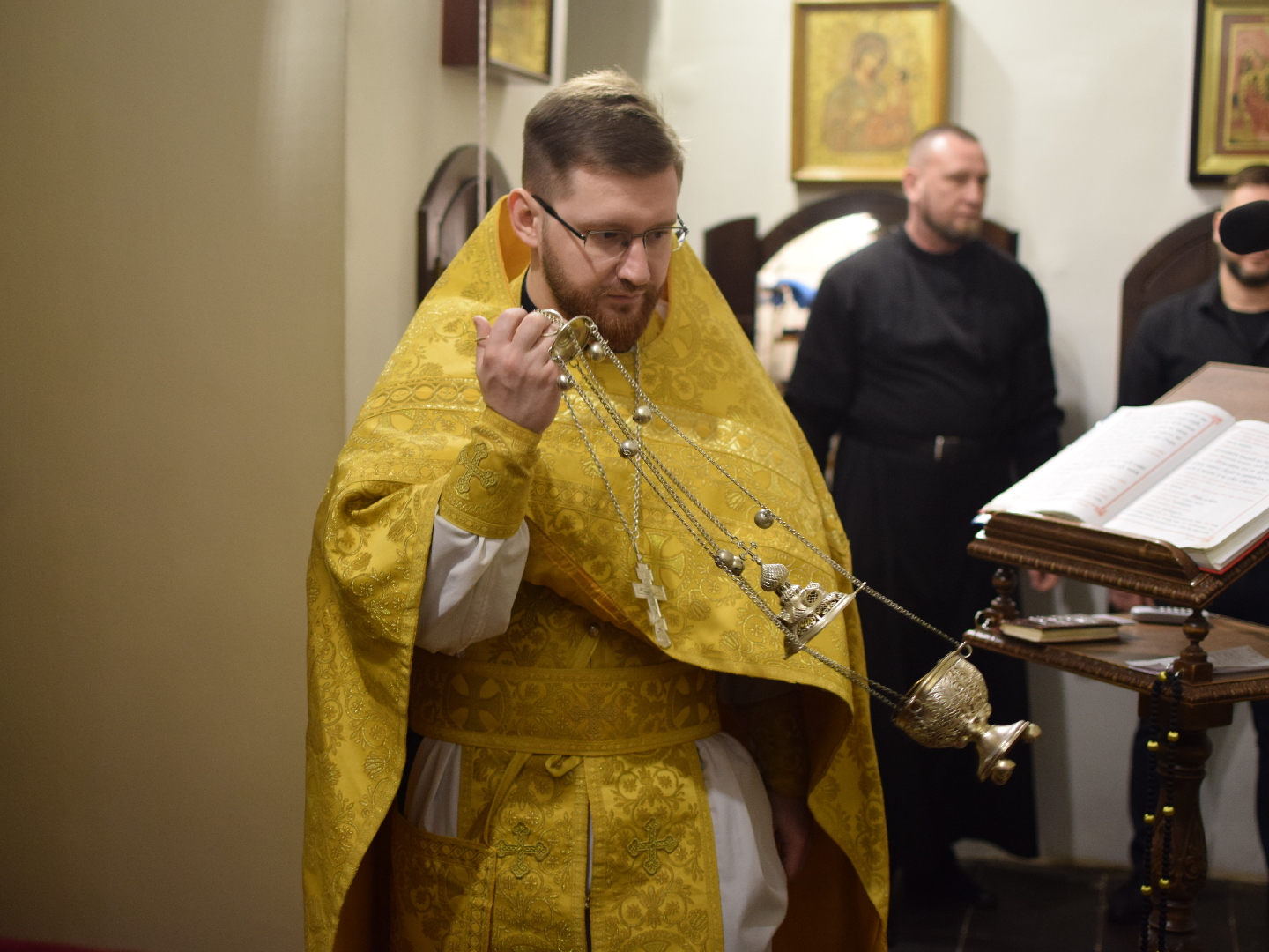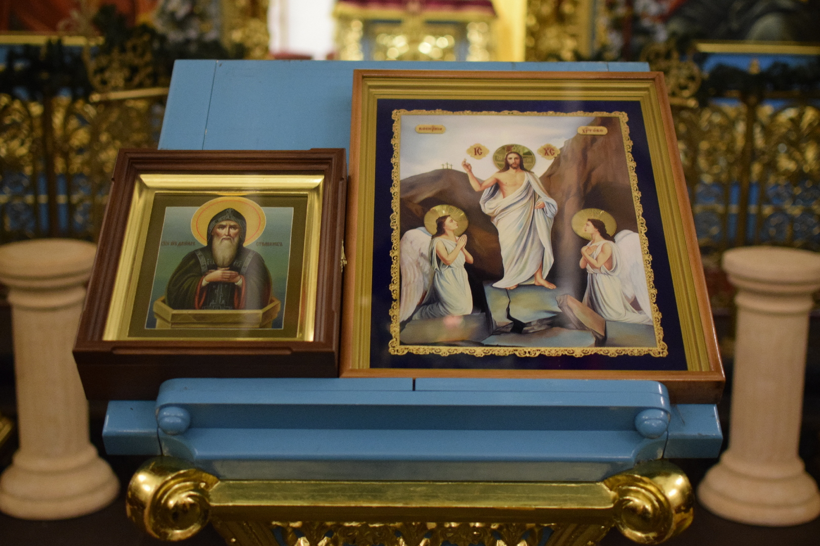 По заамвоной молитве перед образом преподобного Даниила было совершено славление, где исторически находился предел, освященный в его честь.