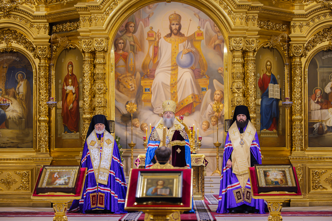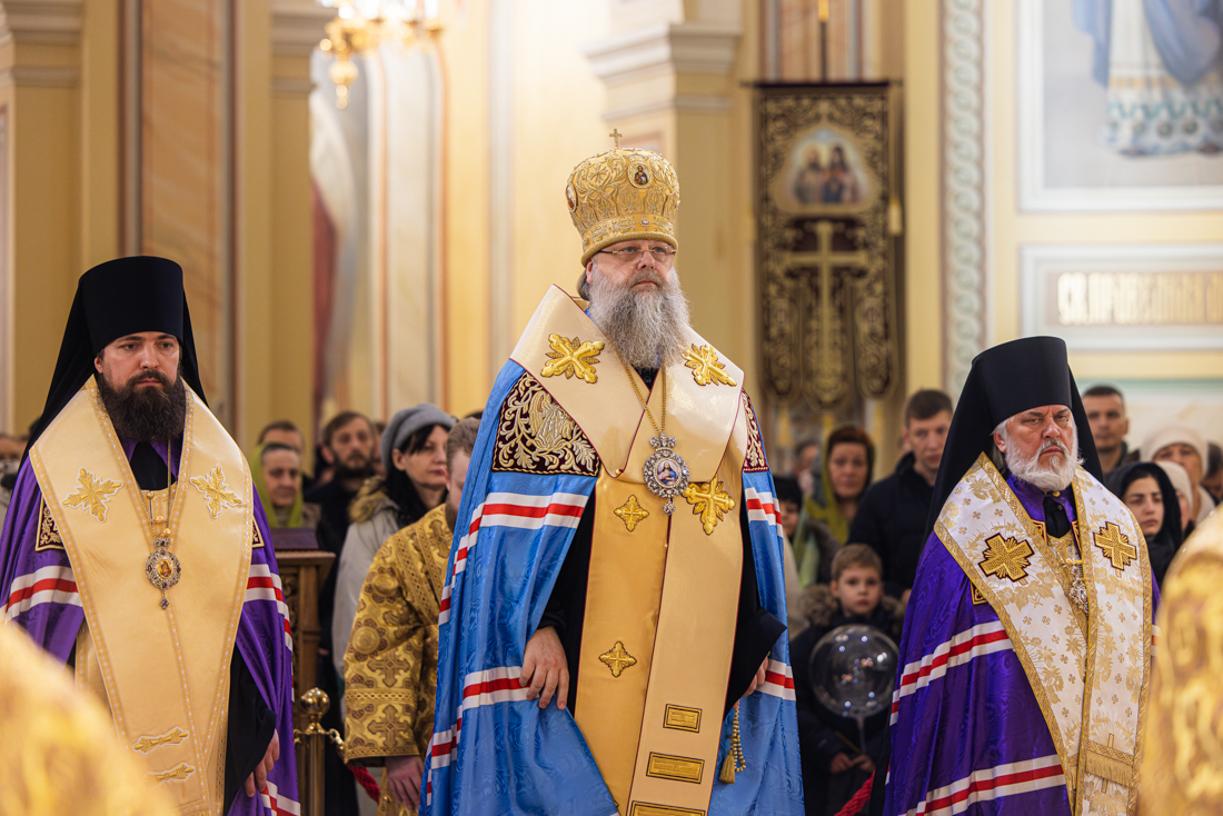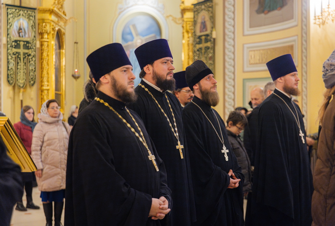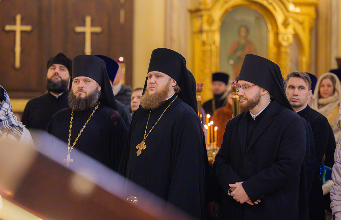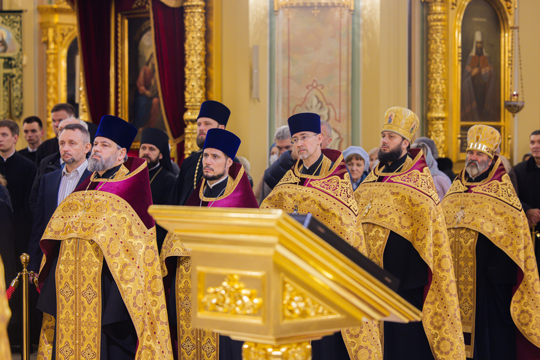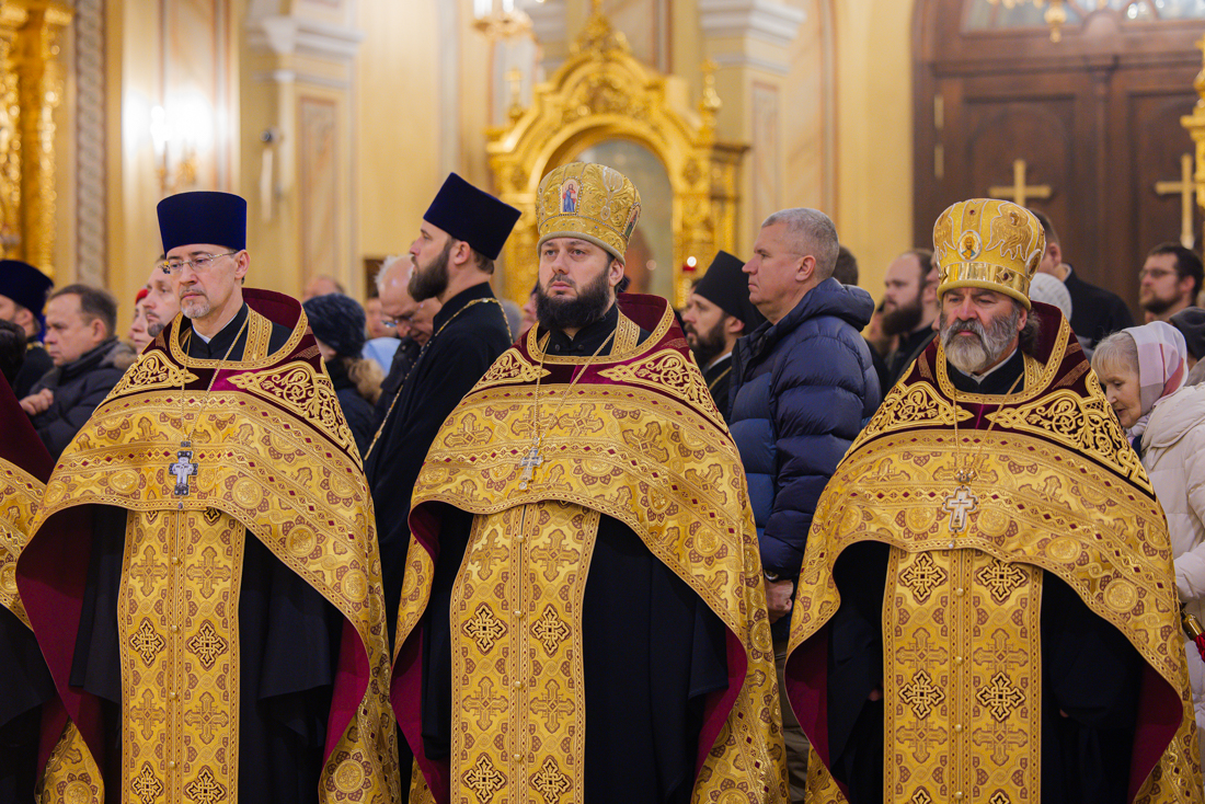 Его Высокопреосвященству сослужили викарий Ростовской епархии епископ Таганрогский Артемий, епископ Пармен (Щипелев), секретарь митрополита Ростовского и Новочеркасского по городу Ростову-на-Дону протоиерей Иоанн Осяк, настоятель собора иерей Леонтий Дмитриев, секретарь Епархиального управления Ростовской-на-Дону епархии, благочинные города, клирики собора.
