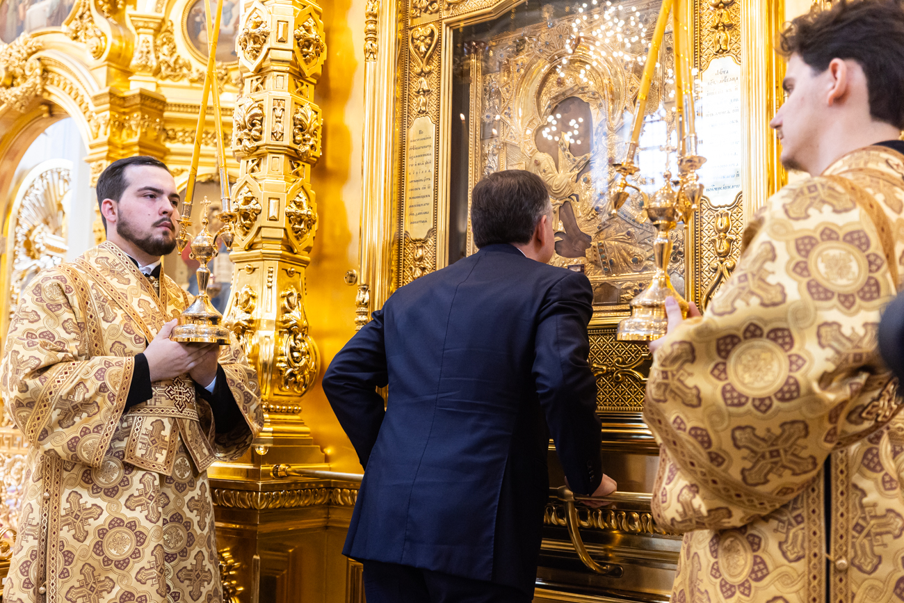 Отрадно отметить, что после назначения временно исполняющим обязанности Губернатора вы первым делом обратились к Богородице в Кафедральном храме. И сегодня, после принесения присяги, вновь пришли к Ее святому образу — Донской Хранительнице нашего края. Потому можно с уверенностью сказать: в этом святом храме Матерь Божия вручает в ваше управление свой Донской удел».