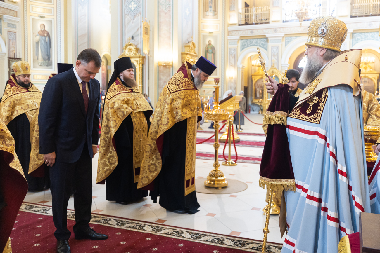 Отрадно отметить, что после назначения временно исполняющим обязанности Губернатора вы первым делом обратились к Богородице в Кафедральном храме. И сегодня, после принесения присяги, вновь пришли к Ее святому образу — Донской Хранительнице нашего края. Потому можно с уверенностью сказать: в этом святом храме Матерь Божия вручает в ваше управление свой Донской удел».