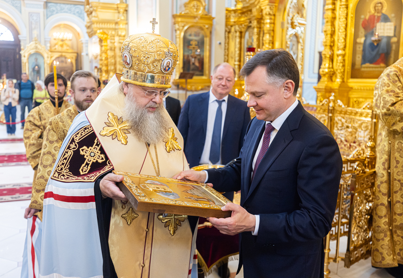 19 сентября 2025 года Глава Донской митрополии митрополит Ростовский и Новочеркасский Меркурий совершил молебен перед чтимым образом Донской иконы Божией Матери по случаю вступления в должность Губернатора Ростовской области Юрия Слюсаря.