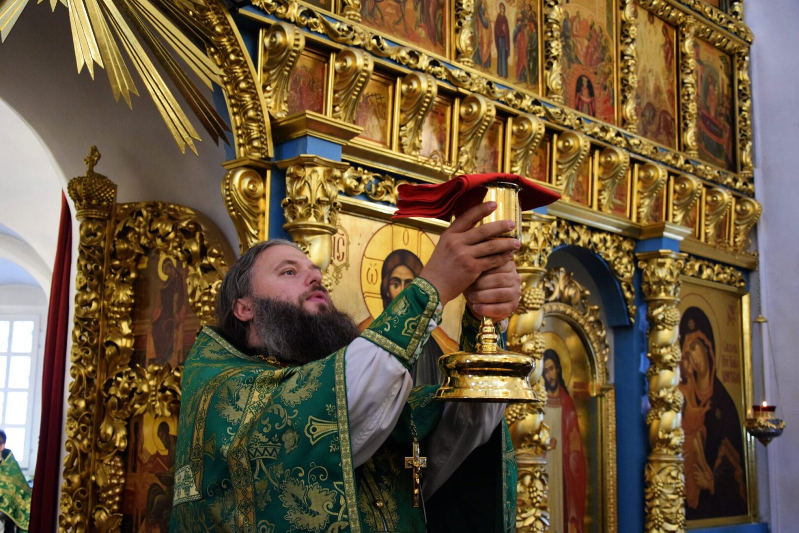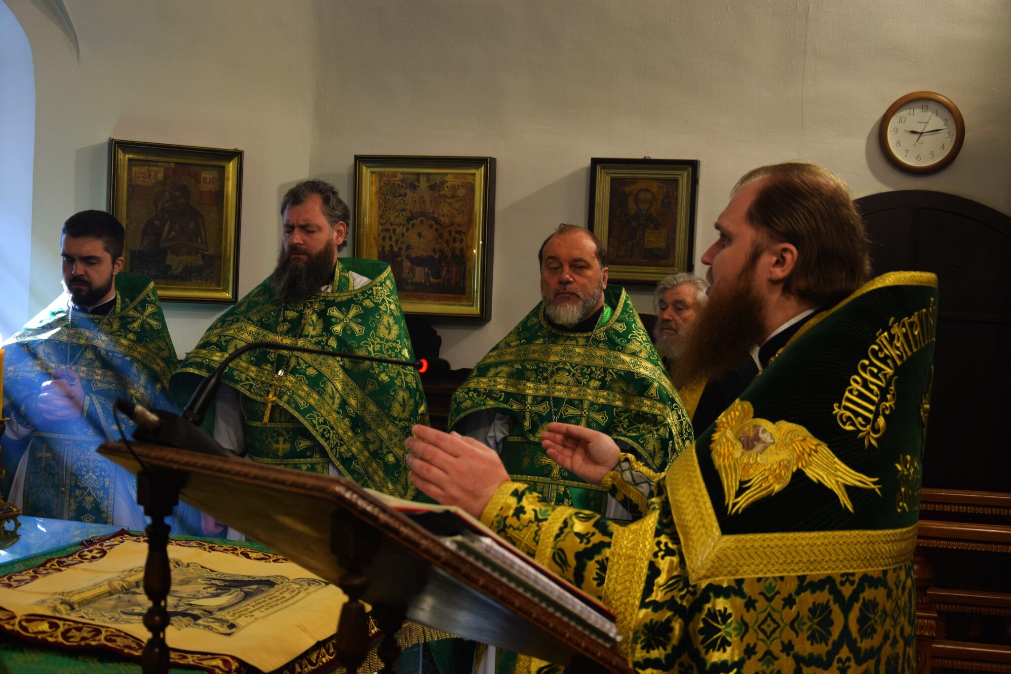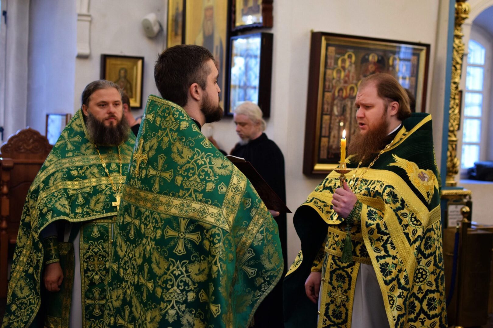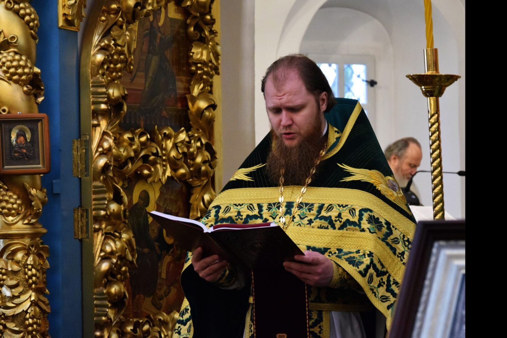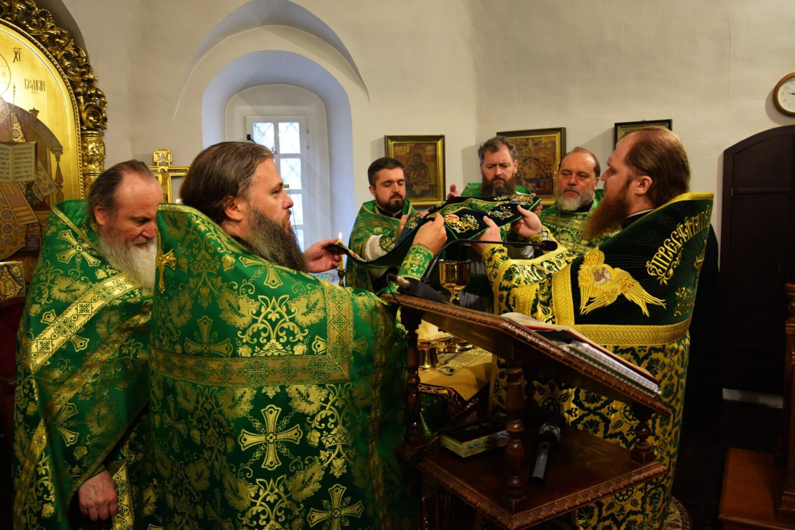 В завершении богослужения благочинный обители иеромонах Никон (Сандульский) от лица братии, сотрудников и паломников монастыря поздравил отца наместника с днем тезоименитства, десятой годовщиной монашеского пострига и диаконской хиротонии и преподнес букет цветов и святую просфору.