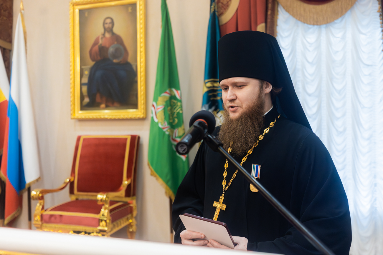 10 октября 2025 года в Тронном зале здания Донской митрополии Глава Донской митрополии митрополит Ростовский и Новочеркасский Меркурий, во внимание к ревностным пастырским трудам ко благу Матери-Церкви, в связи с 10-летием служения в пресвитерском сане, вручил наместнику Донского Старочеркасского Ефремовского мужского монастыря игумену Сергию (Коломиц) медаль Ростовской-на-Дону епархии СВЯТИТЕЛЯ ДИМИТРИЯ, МИТРОПОЛИТА РОСТОВСКОГО.
