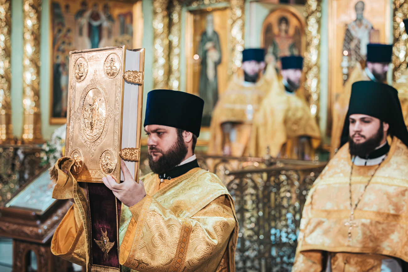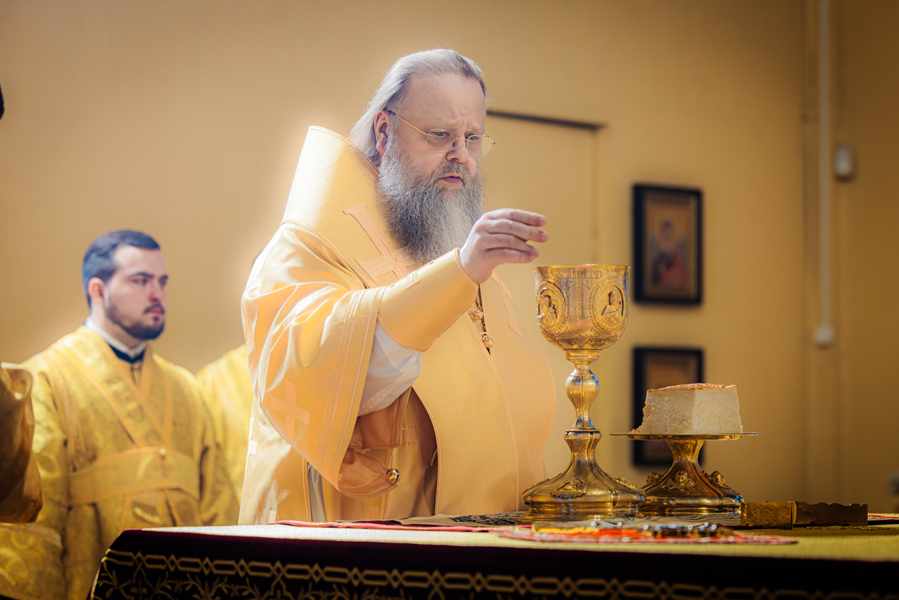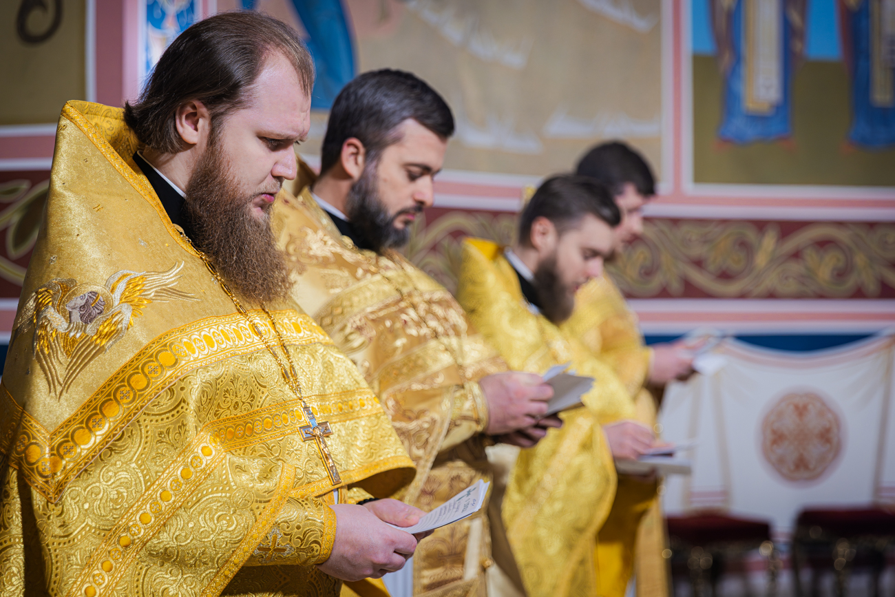 На сугубой ектении была вознесена молитва о Святой Руси. Проповедь перед Святым Причастием произнес клирик храма иерей Матфей Чеботарев.