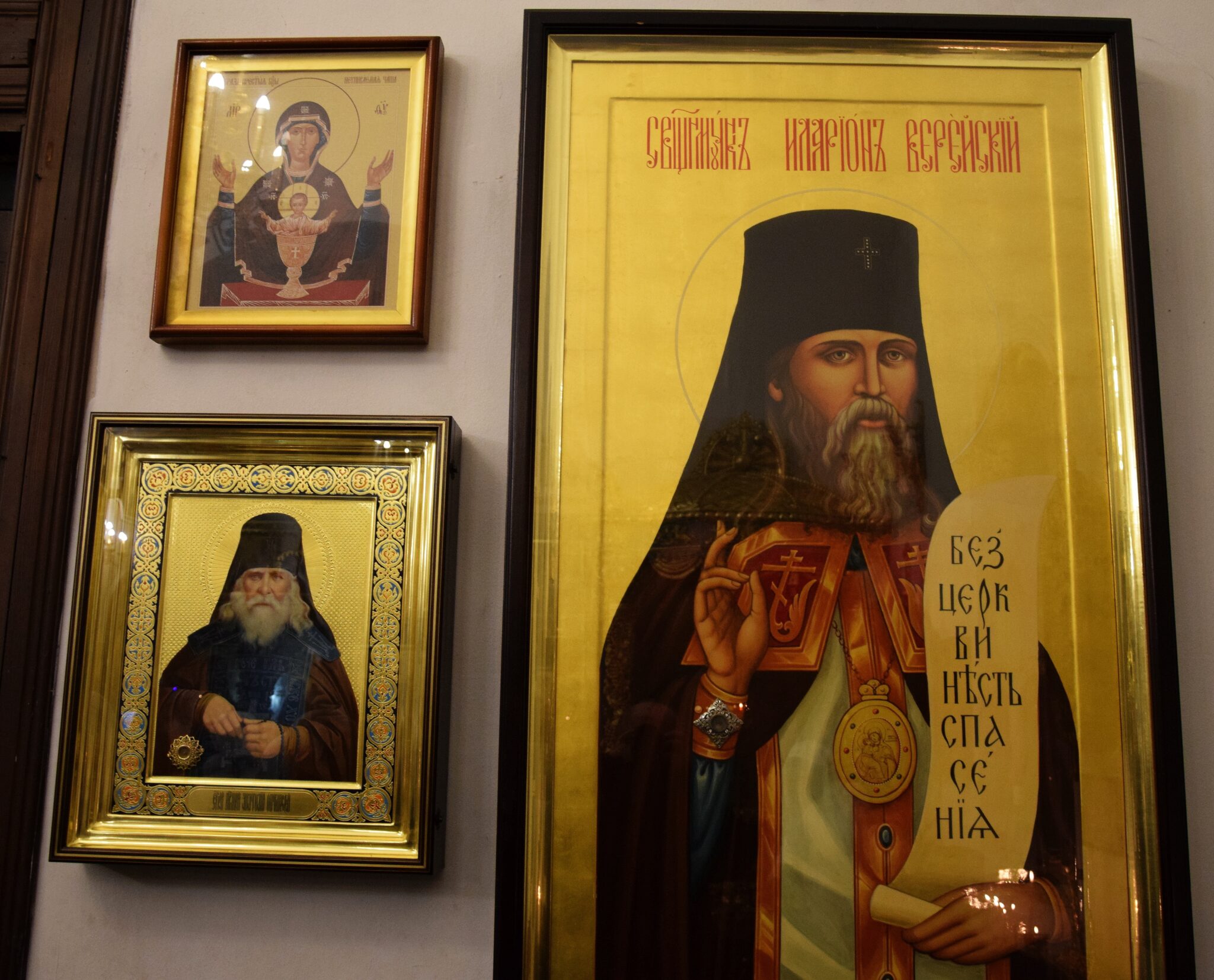 После полиелея за утреней была прочитана молитва священномученику Илариону перед иконой с частицей его святых мощей.