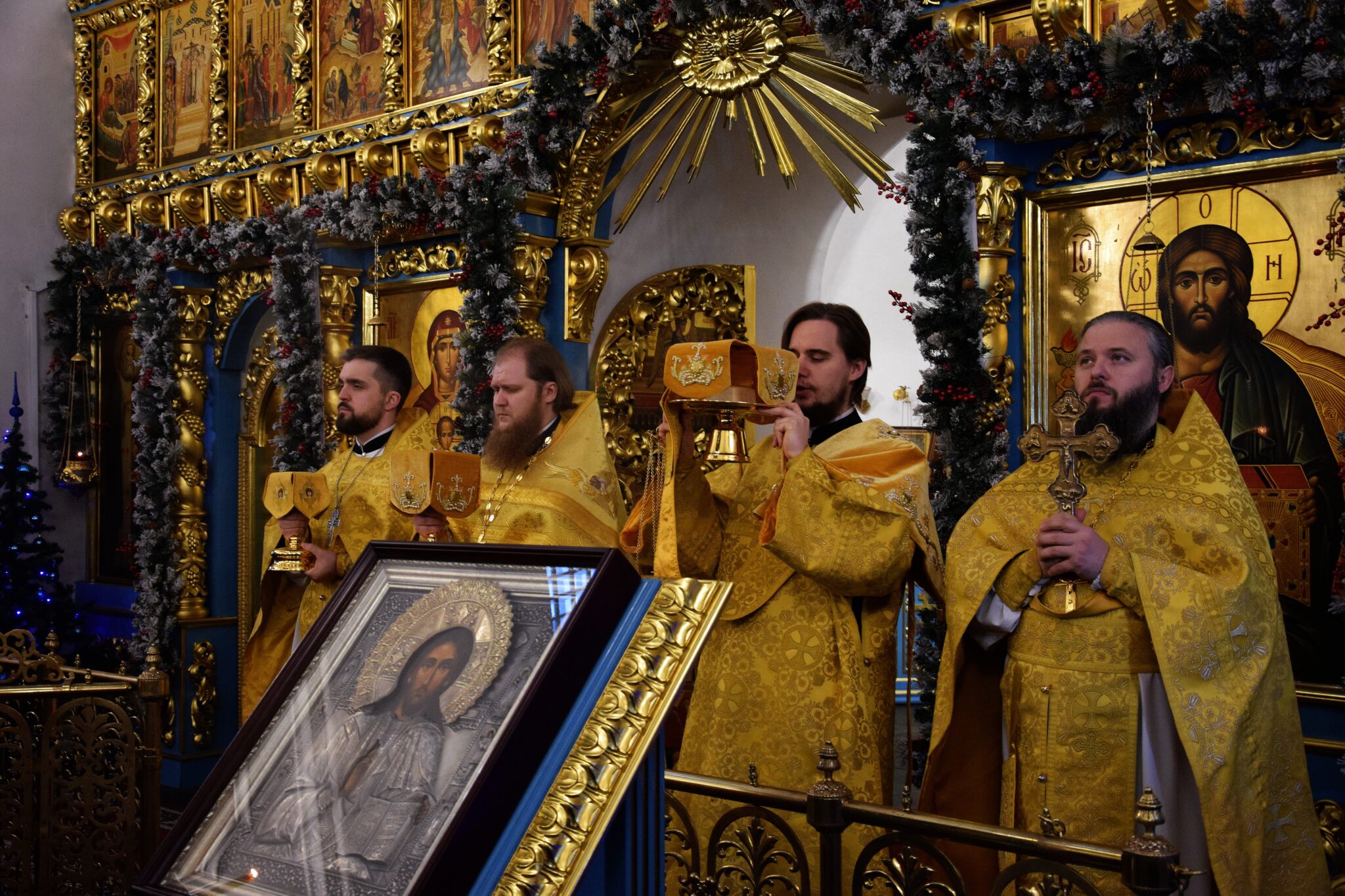 28 декабря 2025 года, в Неделю 29-ю по Пятидесятнице, святых праотец, в день памяти священномученика Иларион, архиепископа Верейского, наместник Донского Старочеркасского Ефремовского мужского монастыря игумен Сергий (Коломиц) совместно с братией обители в священном сане, в храме Донской иконы Божией Матери совершил утреню и Божественную литургию святителя Иоанна Златоустого.