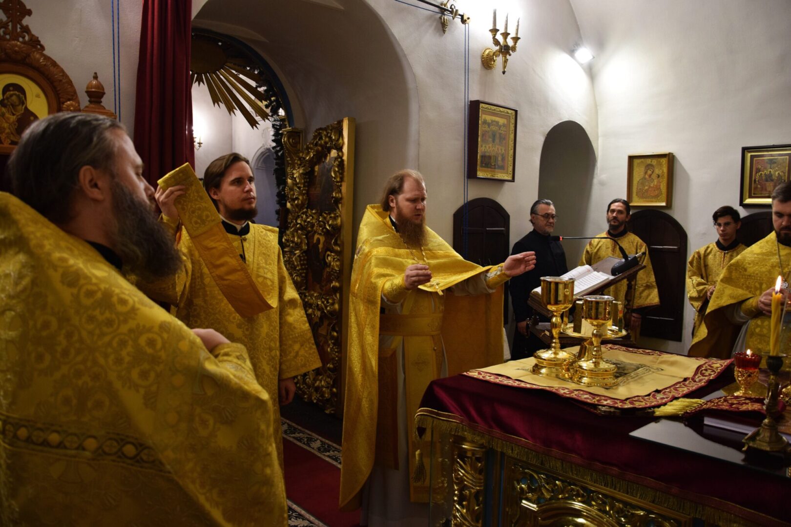 По завершении Литургии был совершен крестный ход внутри обители, братская трапеза и чин о Панагии.