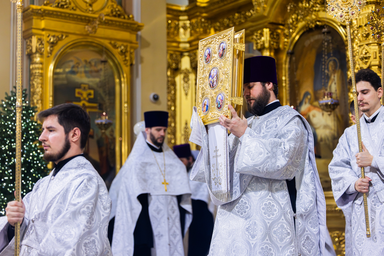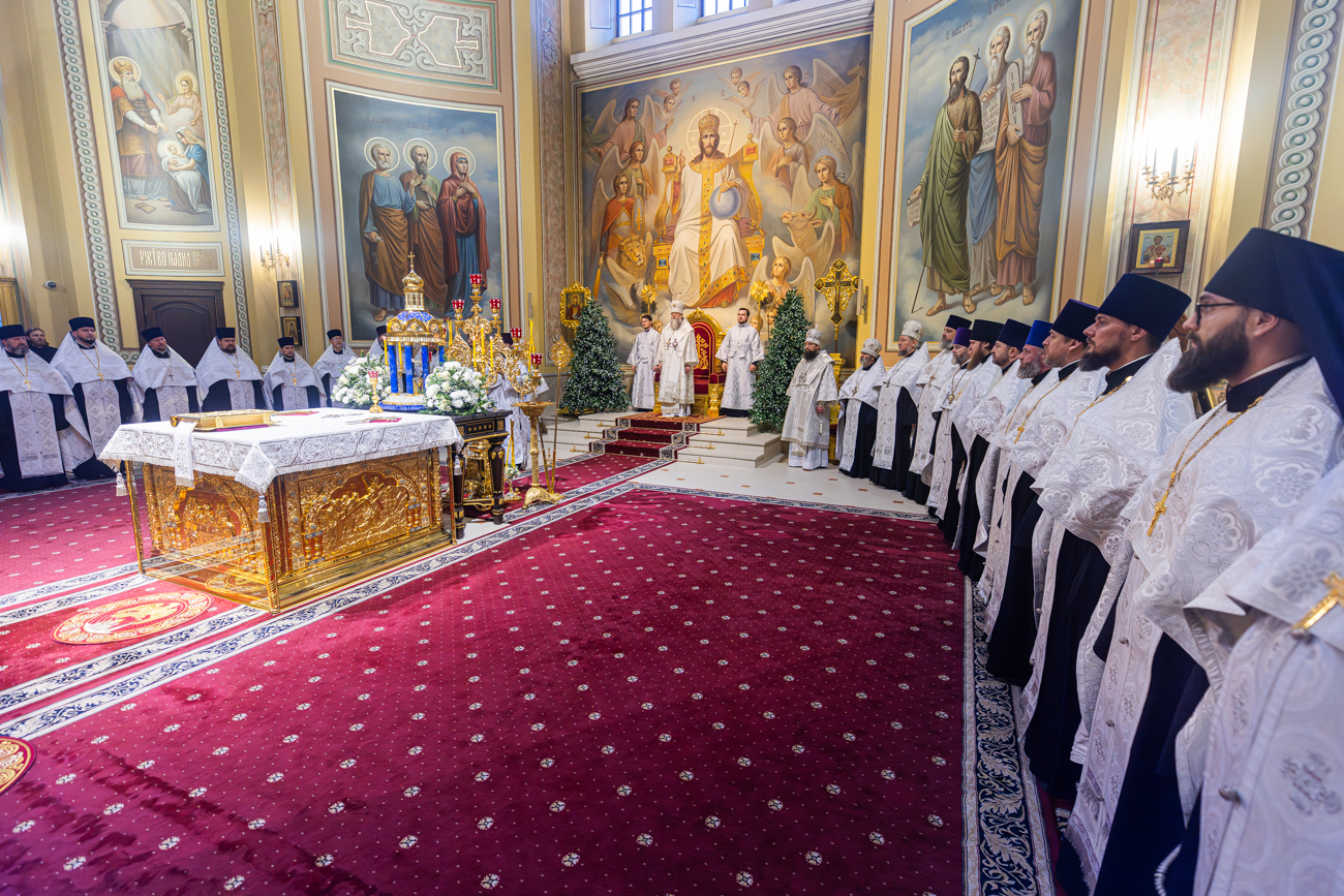 7 января 2026 года, в праздник Рождества Господа Бога и Спаса нашего Иисуса Христа, Глава Донской митрополии митрополит Ростовский и Новочеркасский Меркурий совершил великую вечерню в Кафедральном соборе Рождества Пресвятой Богородицы города Ростова-на-Дону.