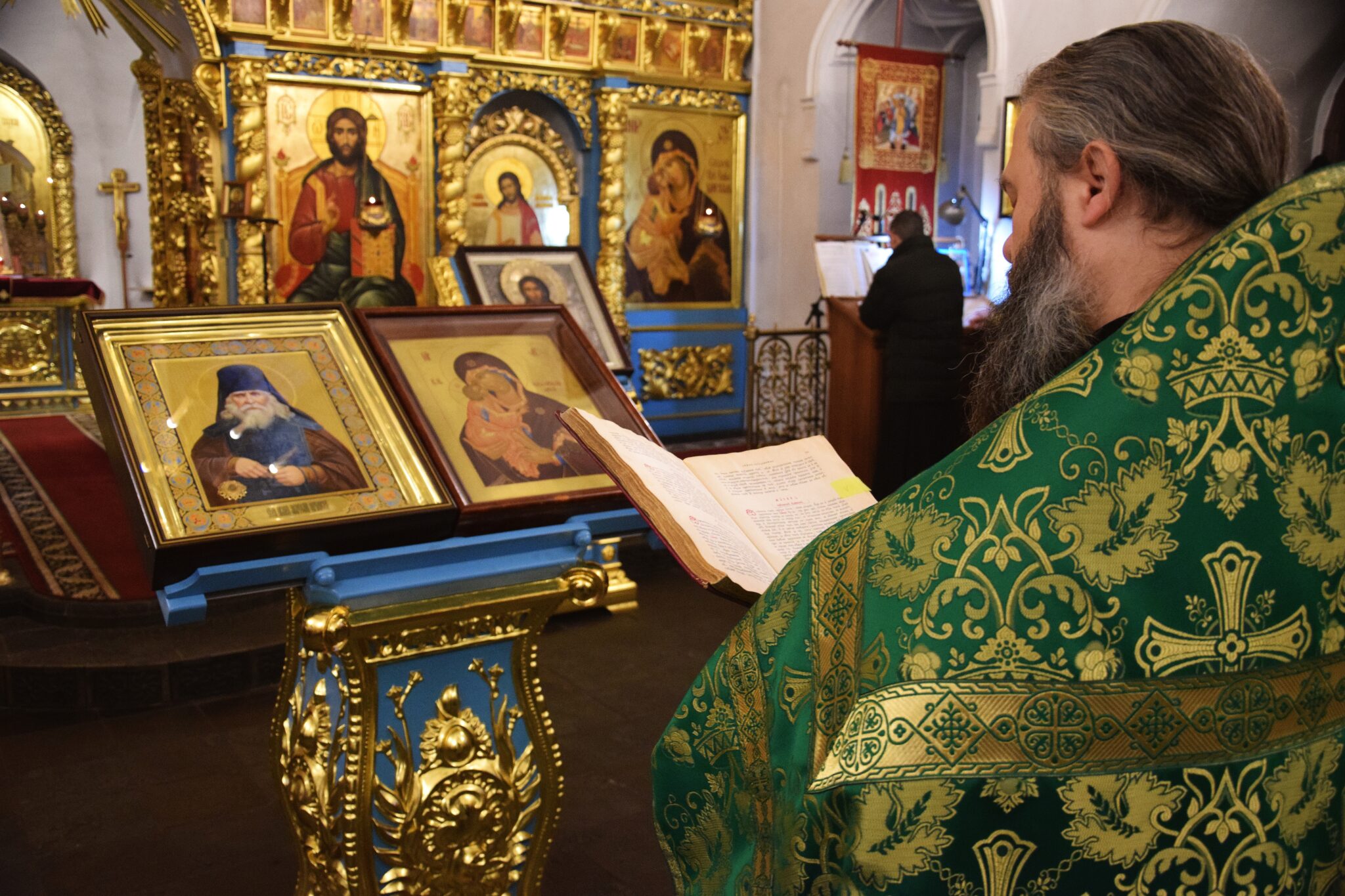 За богослужением были вознесены молитва о Святой Руси и молитва преподобному Анатолию перед иконой с частицей его святых мощей. Песнопения богослужений исполнил братский хор обители под управлением регента Владимира Лисаченко.