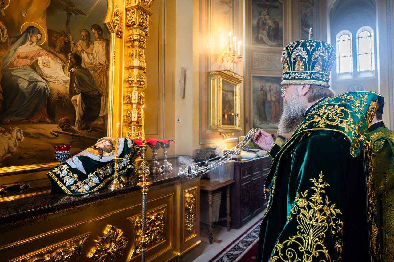 По окончании богослужения Его Высокопреосвященство обратился к молящимся с архипастырским словом, отметив: «Сегодня мы совершаем память праведного Иоанна, пресвитера Ростовского, у раки с его святыми мощами.