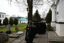 В завершение братия совершила крестный ход внутри обители и разделила братскую трапезу.
