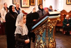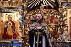 Перед Святым Причастием игумен Сергий (Коломиц) обратился к молящимся с проповедью, в которой отметил великое смирение, которое воспринял Христос ради нашего спасения. Господь, будучи Богом, смирился до того, чтобы умыть ноги своим ученикам. Как тогда, так и сегодня Он снисходит к нашим немощам и преподает Себя верующим через Свои Божественные Тело и Кровь.