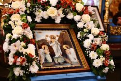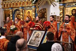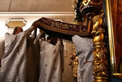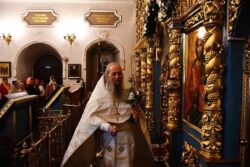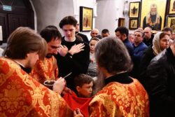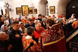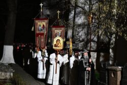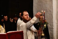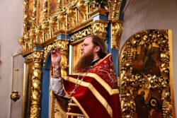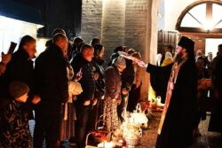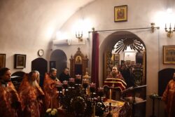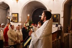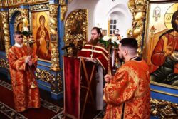 После заамвонной молитвы игумен Сергий (Коломиц) освятил артос и в завершение богослужения обратился к братии и молящимся с пастырским словом, поздравив всех со Светлым Христовым воскресением. После проповеди и преподания богослужения были освящены пасхальные приношения.