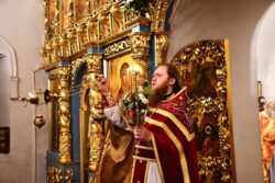 Песнопения богослужений исполнил мужской хор обители под управлением регента Владимира Лисаченко. На сугубой ектении была вознесена молитва о Святой Руси. Перед Святым Причастием иеромонах Софроний (Зародов) огласил Пасхальное послание Патриарха Московского и всея Руси Кирилла.