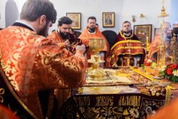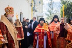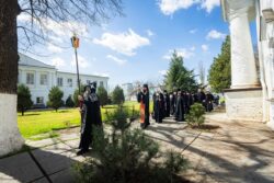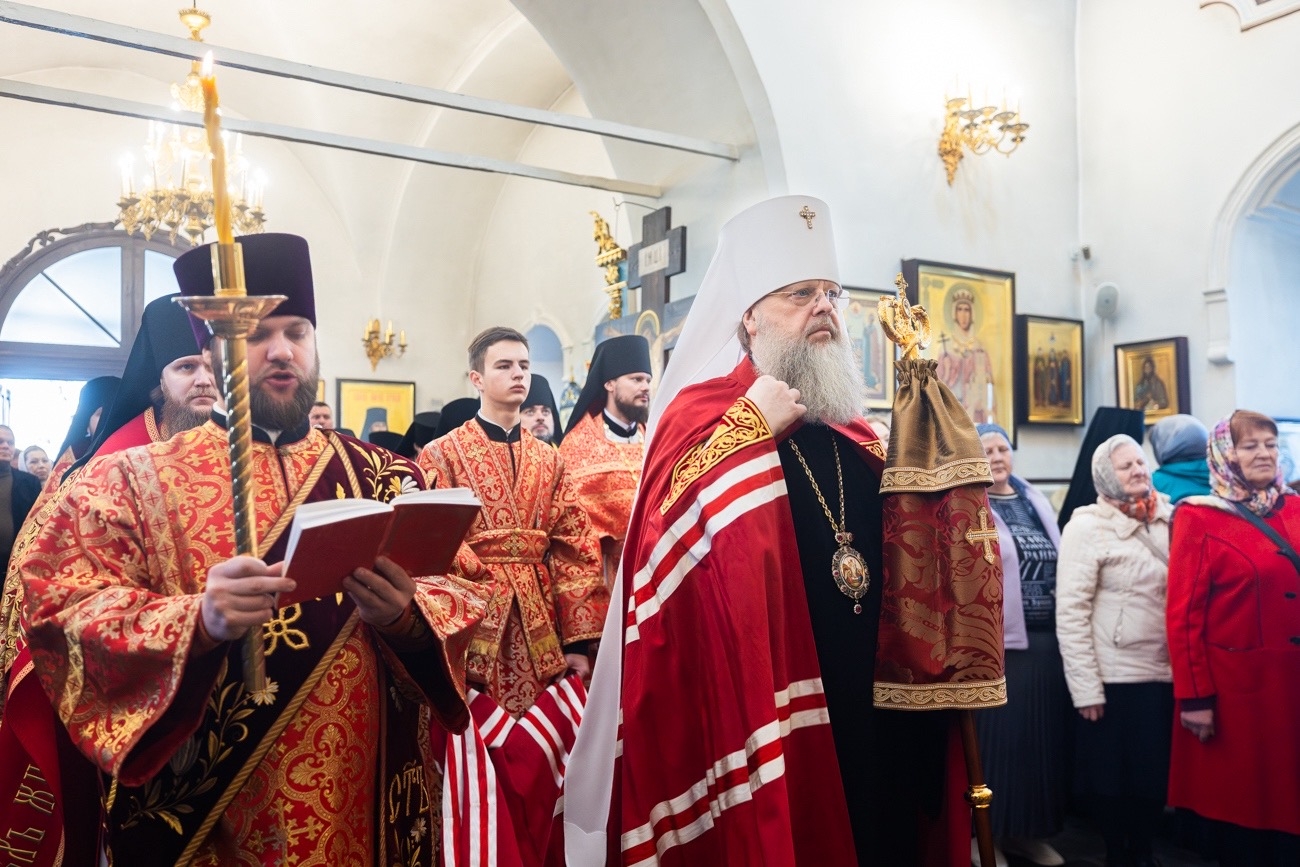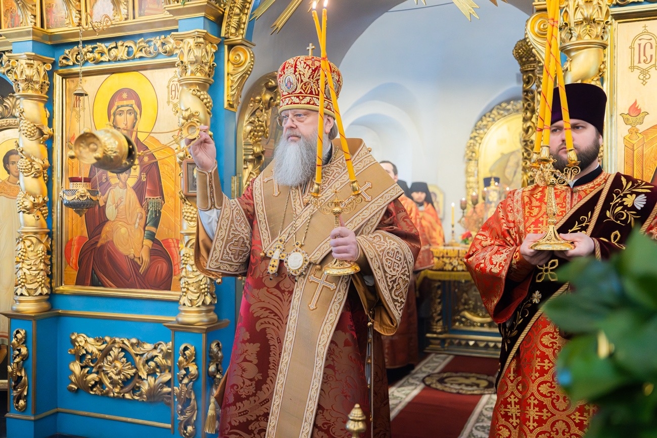 Его Высокопреосвященству сослужили наместник Донского Старочеркасского Ефремовского мужского монастыря игумен Сергий (Коломиц), благочинный монастыря иеромонах Никон (Сандульский), благочинный Азовского городского округа иеромонах Амвросий (Плахотный), а также монашествующие клирики епархии в священном сане.