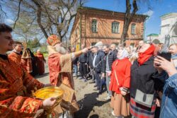 Со словом приветствия к владыке митрополиту обратился наместник Донского Старочеркасского Ефремовского мужского монастыря игумен Сергий (Коломиц). Он поблагодарил священноархимандрита Старочеркасской обители за совместную молитву и преподнес Его Высокопреосвященству пасхальное яйцо.