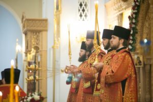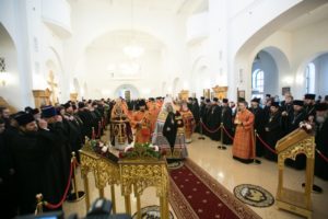 В день тезоименитства митрополита Ростовского и Новочеркасского Меркурия и.о. наместника Свято-Донского Старочеркасского монастыря с братией молился за Божественной литургией в соборном храме Святой Троицы Иверского женского монастыря г.Ростова-на-Дону