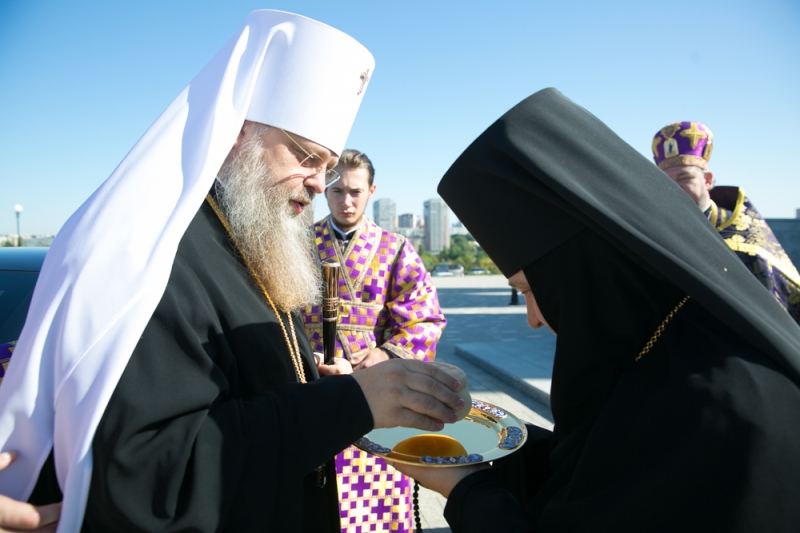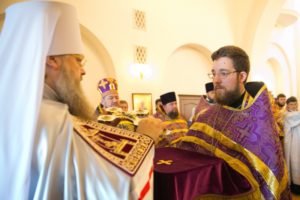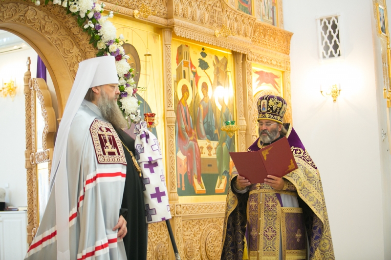 В праздник Происхождения (изнесения) Честных Древ Животворящего Креста Господня исполняющий обязанности наместника Свято-Донской Старочеркасской обители сослужил Главе Донской митрополии за Божественной литургией в Троицком храме Свято-Иверского женского монастыря